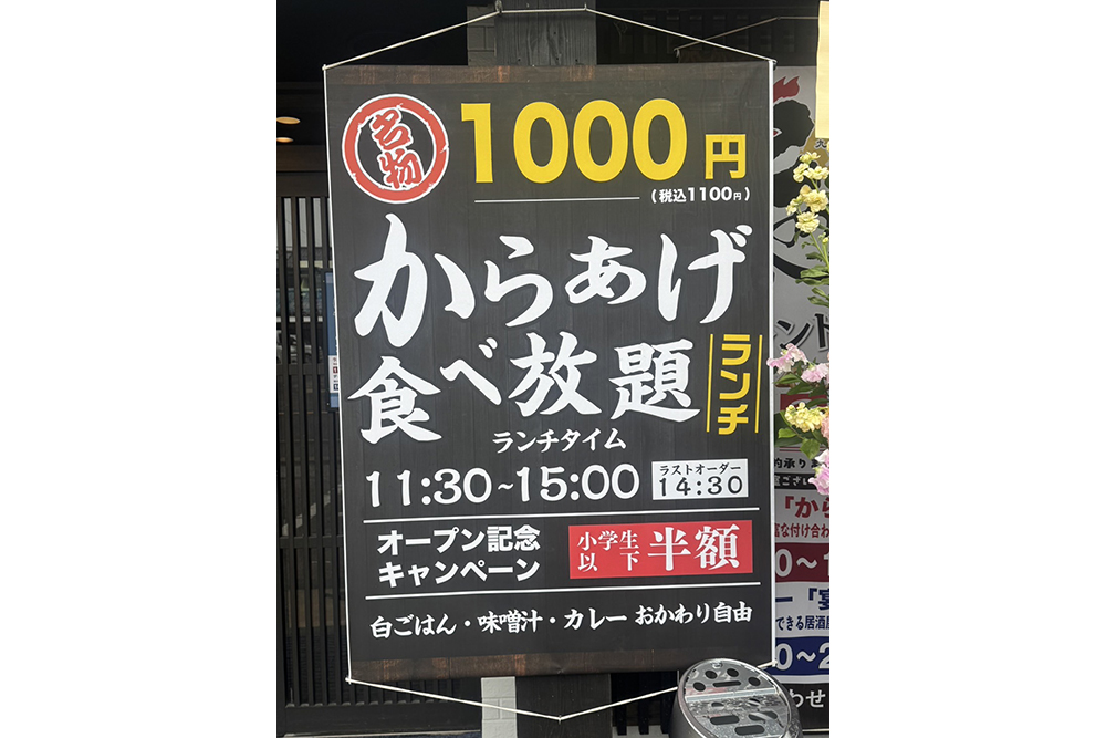 唐揚げ食べ放題や、ご飯・味噌汁・カレーのおかわり自由など、食べ盛りのお子様もご満足いただけます。